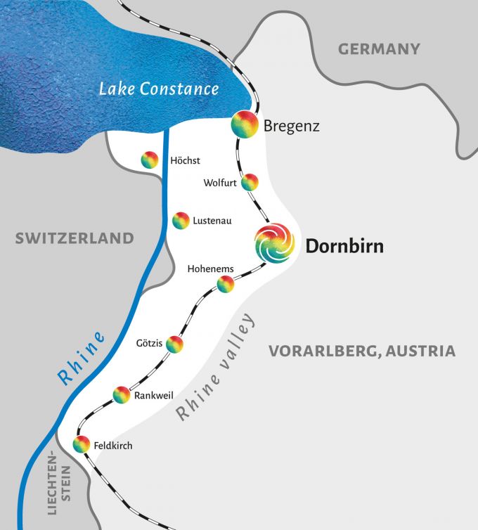 Bregenz, Höchst, Lustenau, Wolfurt, Hohenems, Götzis, Rankweil, Feldkirch
